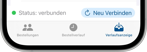 Sobald sich deine Geräte in Reichweite befinden, kannst du die aktuelle Bestellungen und den gesamten Verlauf an den Assistenten senden.