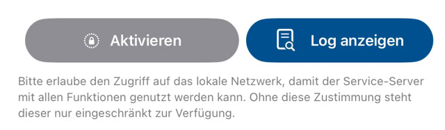 Öffne auf deinem Kassen-iPad die Einstellungen der Festkasse und aktiviere dort einmalig den Service-Server. Erlaube Anschließen den Zugriff auf das lokale Netzwerk.